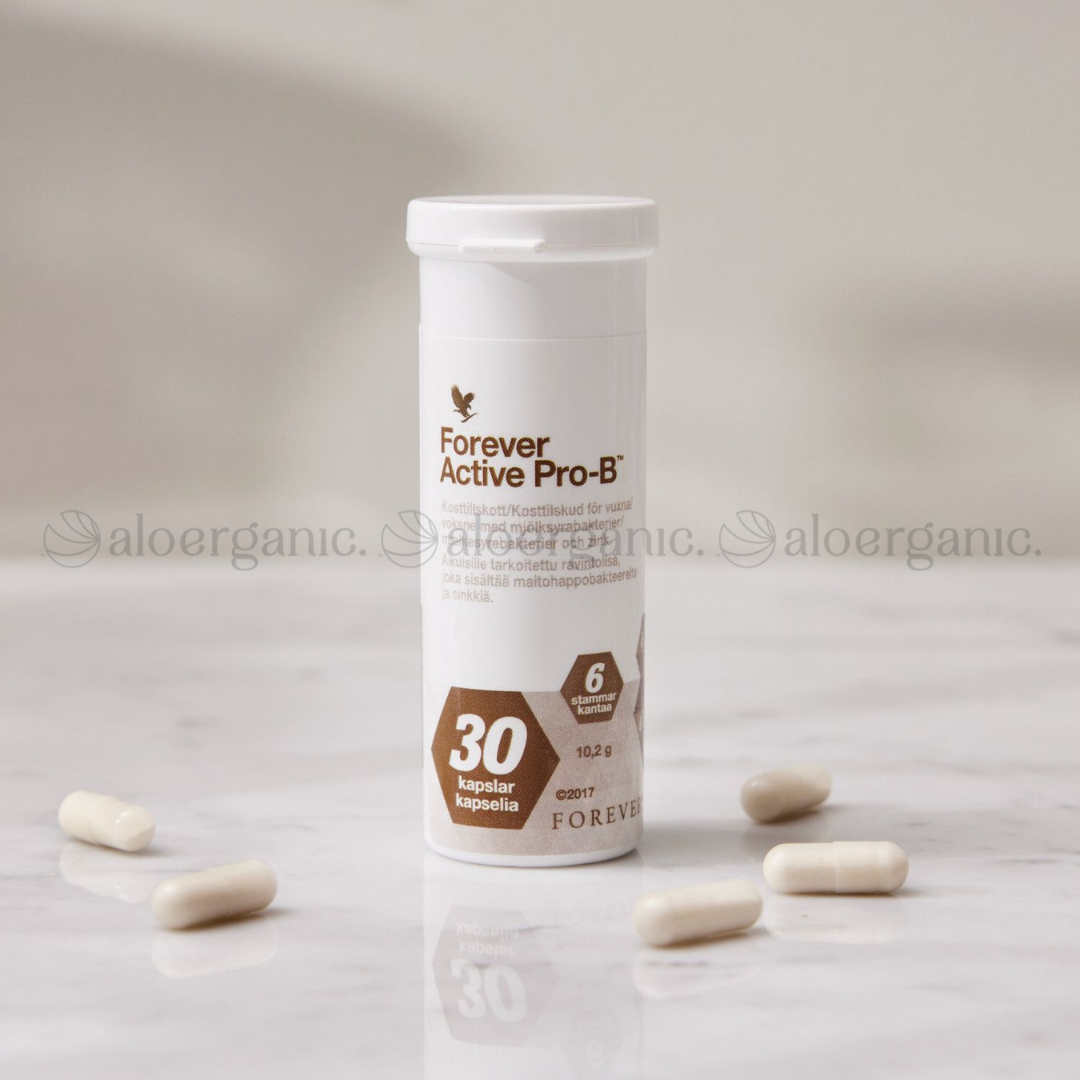 Здравата цревна флора е основа за силен имунитет, добра дигестија и енергија низ целиот ден. Forever Active Pro-B® премиум производ, незаменлив во својата категорија, кој е специјално формулиран пробиотски комплекс со повеќе видови живи бактерии кои помагаат за балансирана исхрана на цревата, подобра апсорпција на хранливи материи и поддршка на природните одбранбени механизми на телото. Овој производ е најдобар партнер за сите кои сакаат да ја подобрат својата дигестива, имунитет и општо здравје – без непотребни состојки.