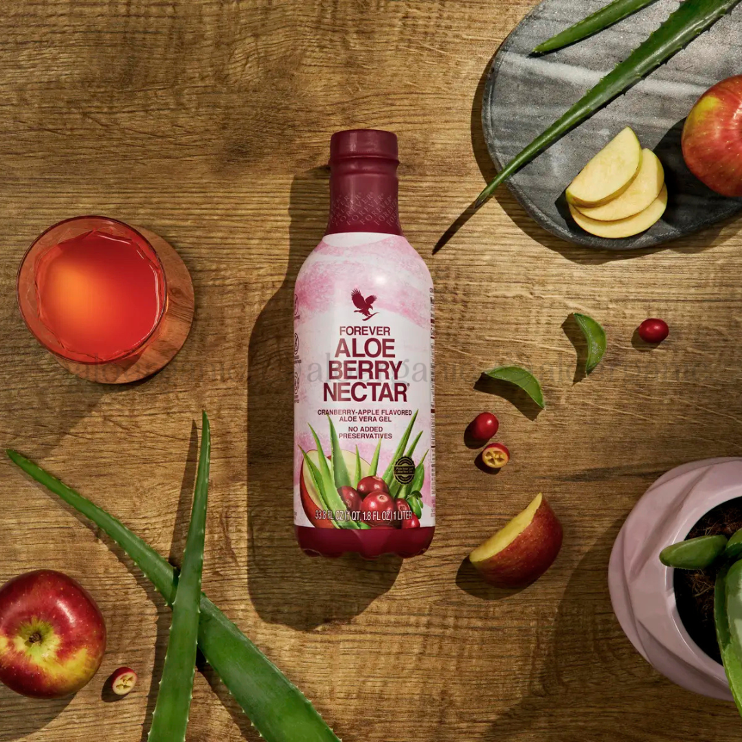 Forever Aloe Berry Nectar содржи 90,3% чист стабилизиран гел од алое во совршена комбинација со брусници и јаболки.